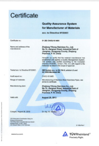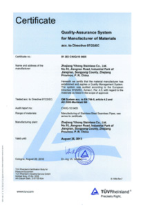 公司嚴(yán)格按ISO9001:2015《質(zhì)量管理體系—要求》、ISO14001:2015《環(huán)境管理體系 要求及使用指南》、ISO 45001:2018《職業(yè)健康管理體系 要求及使用指南》和TSG 07—2019《特種設(shè)備生產(chǎn)和充裝單位許可規(guī)則》,建立完善的管理體系。公司擁有國內(nèi)較大的12000KN冷拔機組和先進(jìn)的全溫控不銹鋼固溶退火爐等生產(chǎn)設(shè)備,同時具有ET16-159渦流探傷儀、UT16-159超聲波探傷儀、UT159-830超聲波探傷儀、H159-630水壓試驗機、WAD—600液壓材料試驗機、4XB電腦金相顯微鏡、JQ—300沖擊試驗機、HBRVU—187.5硬度計、島津光譜儀、化學(xué)分析儀、晶間腐蝕試驗等完善的檢測設(shè)備。